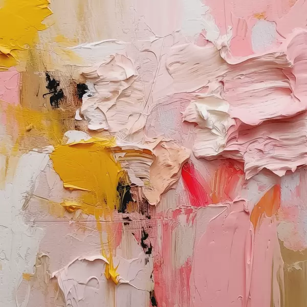 Poster Espressionismo astratto di grandi pennellate di vernice in rosa, giallo e bianco f38916