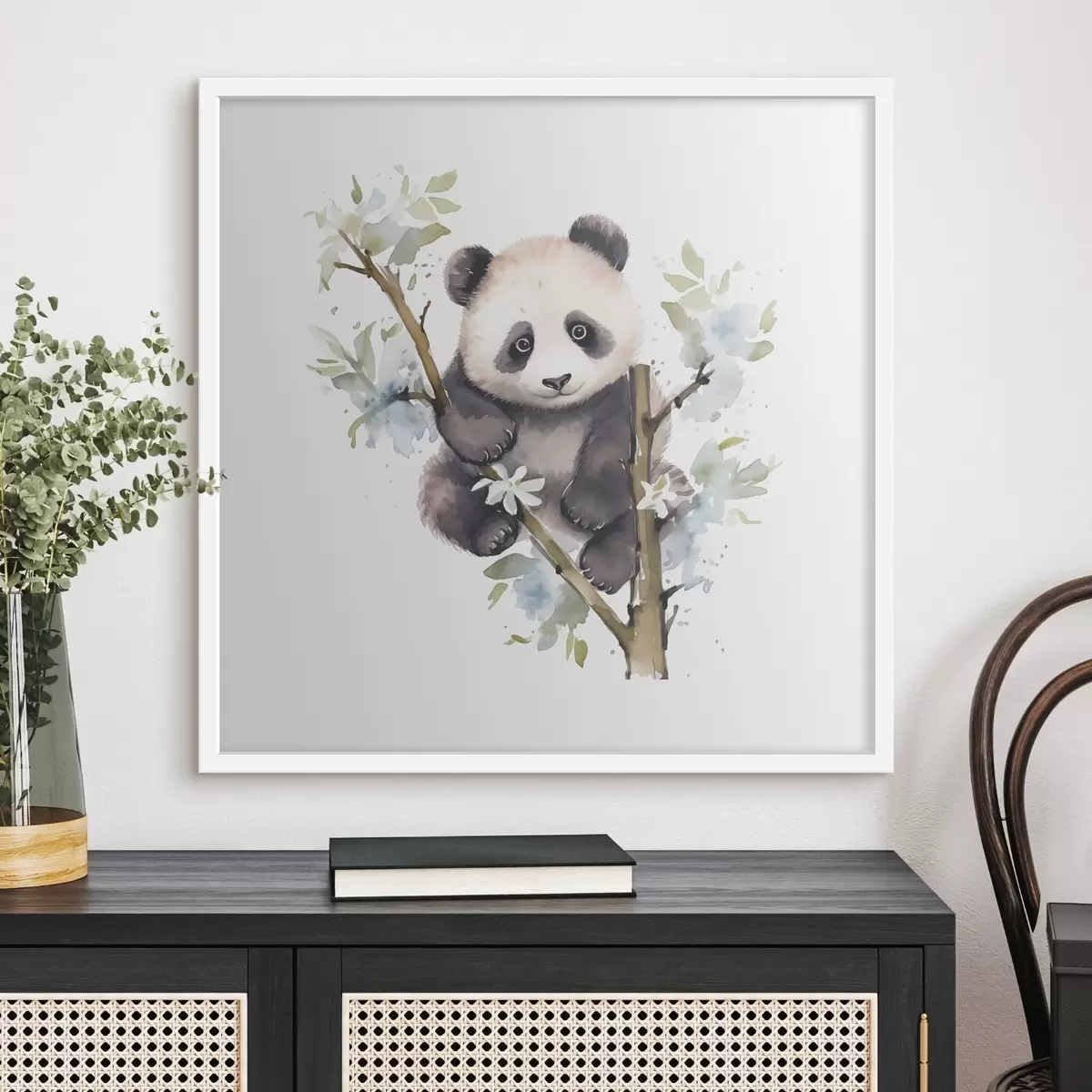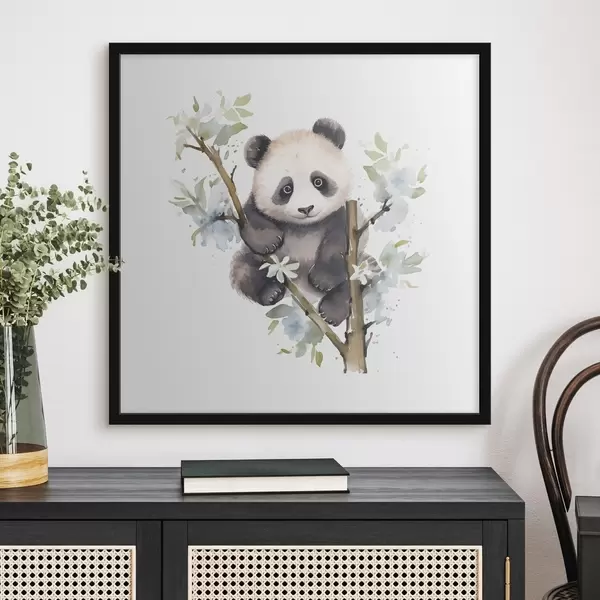 Poster Un panda giocoso che si gode i fiori di primavera Nr f38924