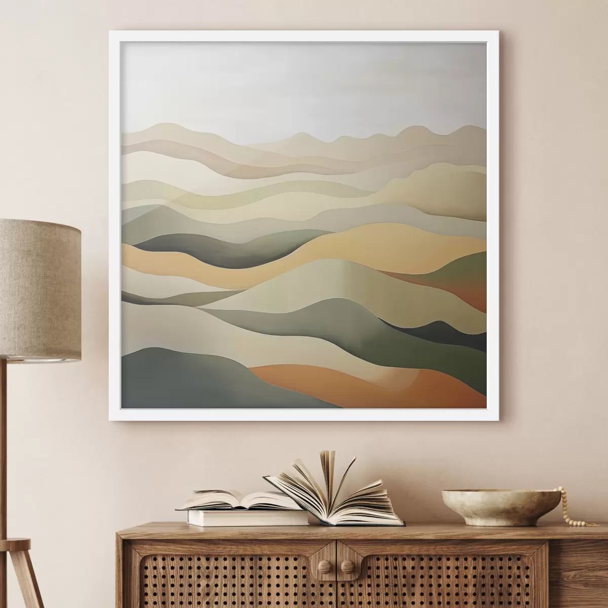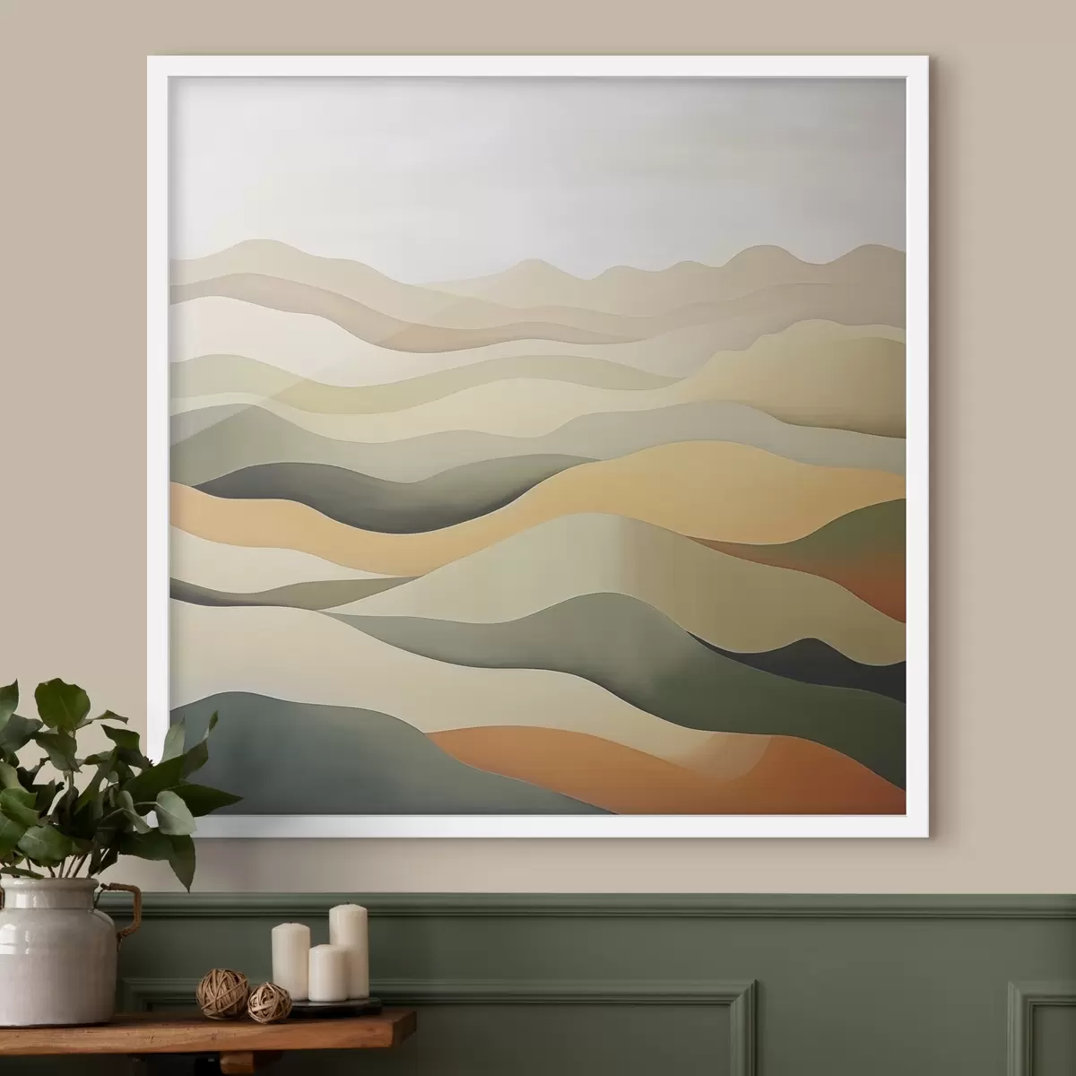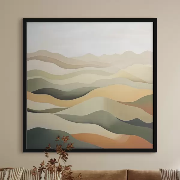 Poster Colline, paesaggio astratto, guazzo, verde, ocra, seppia, grigio f38952