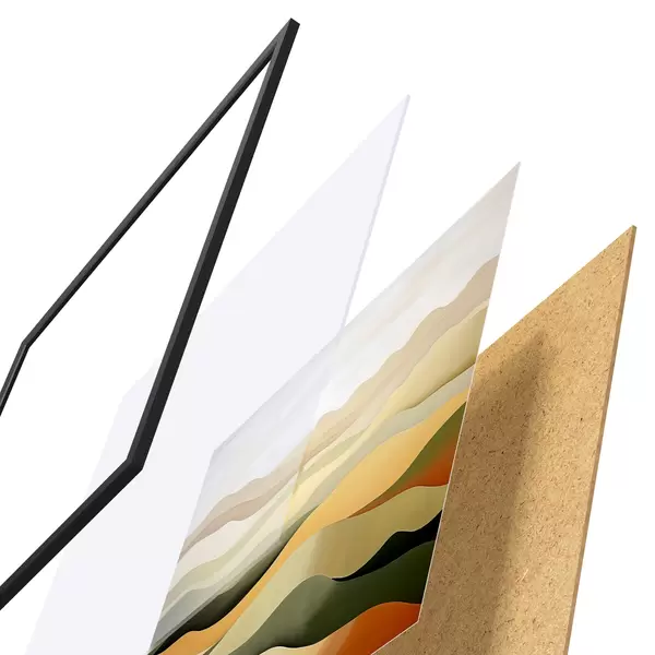 Il poster è composto da cornice, plexiglass, immagine stampata e supporto in truciolato. Il poster può essere immediatamente appeso alla parete grazie ai supporti sul retro.
