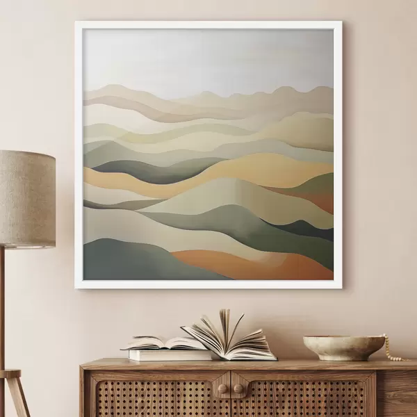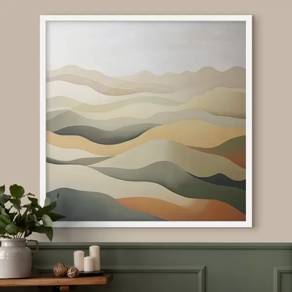 Poster Colline, paesaggio astratto, guazzo, verde, ocra, seppia, grigio Nr f38952
