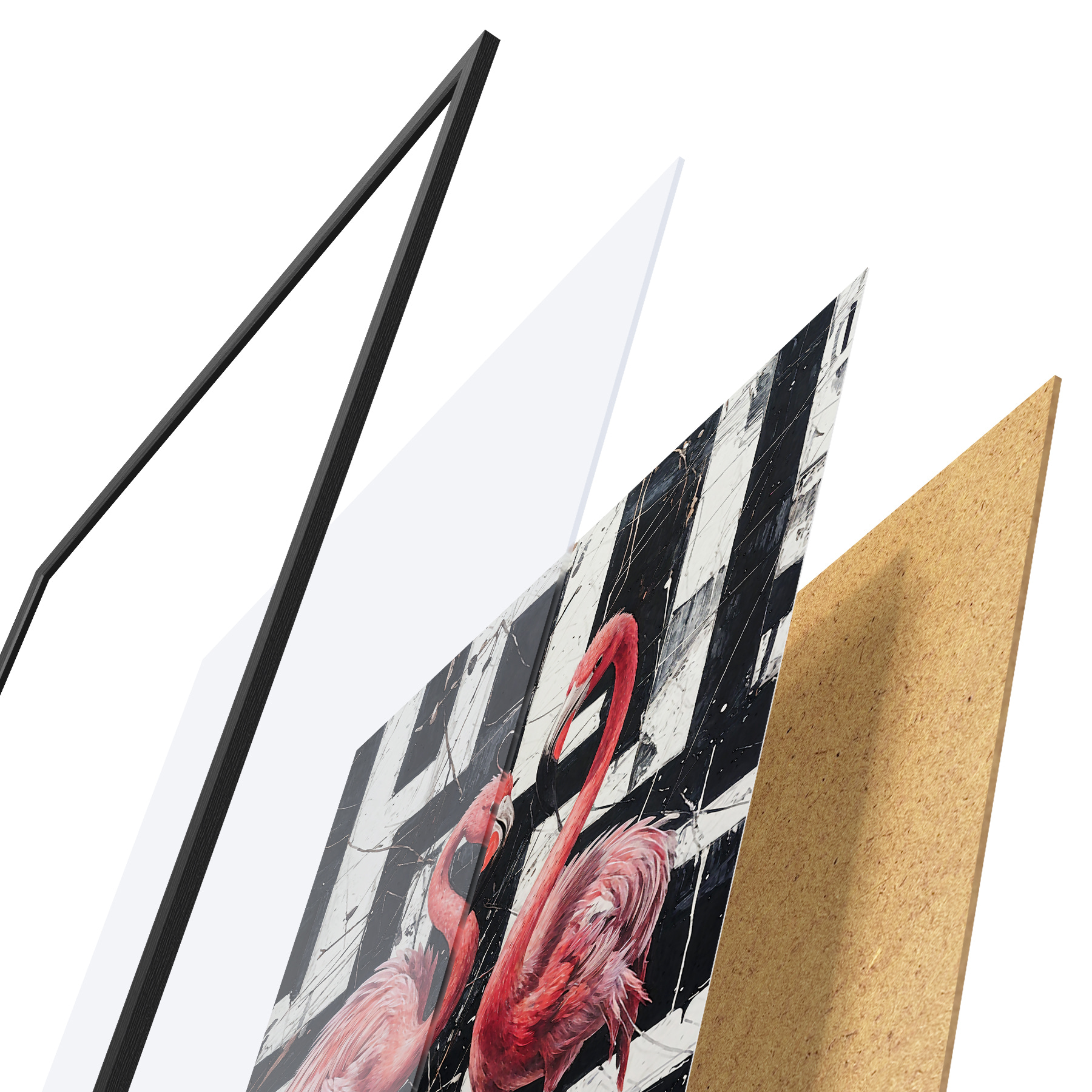 Il poster è composto da cornice, plexiglass, immagine stampata e supporto in truciolato. Il poster può essere immediatamente appeso alla parete grazie ai supporti sul retro.