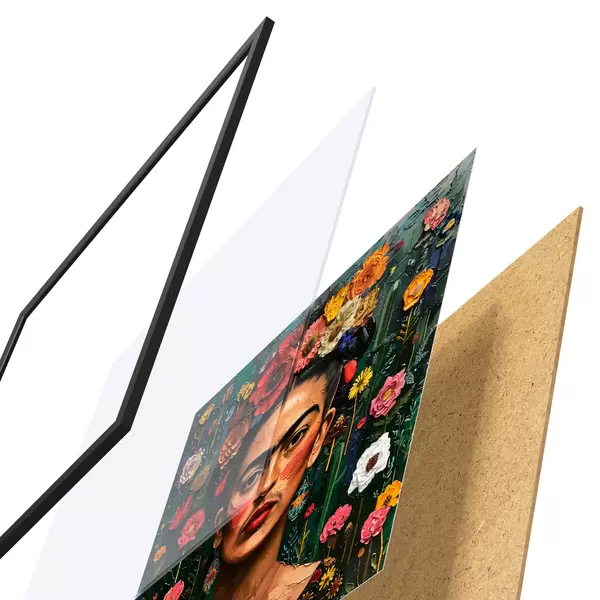 Il poster è composto da cornice, plexiglass, immagine stampata e supporto in truciolato. Il poster può essere immediatamente appeso alla parete grazie ai supporti sul retro.