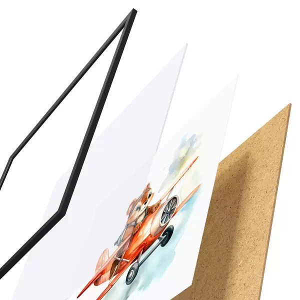 Poster Piccolo scoiattolo vola in un'illustrazione per bambini ad acquerello di un aereo rosso Nr f39116