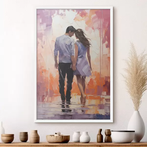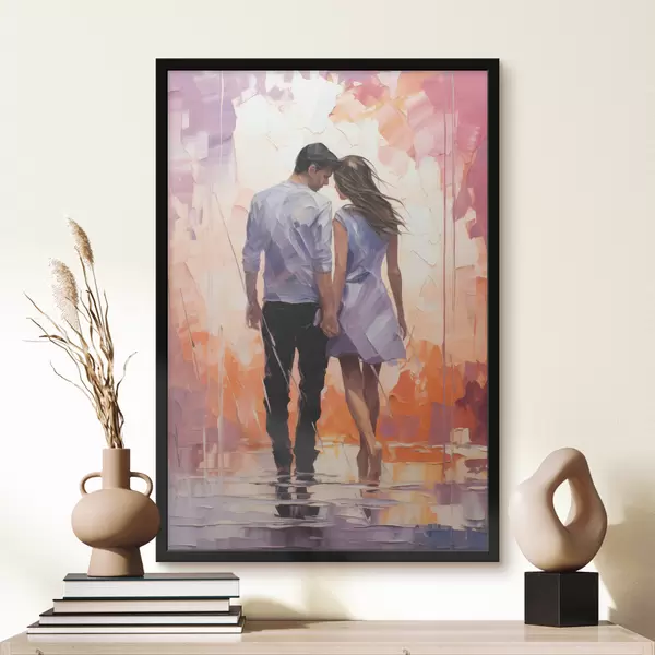 Poster Silhouette di una coppia innamorata pittura astratta, ragazza e ragazzo, colore rosa, arancione, viola, nero Nr f39124