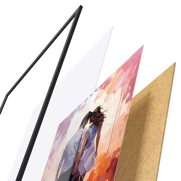 Il poster è composto da cornice, plexiglass, immagine stampata e supporto in truciolato. Il poster può essere immediatamente appeso alla parete grazie ai supporti sul retro.
