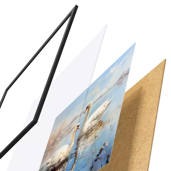 Il poster è composto da cornice, plexiglass, immagine stampata e supporto in truciolato. Il poster può essere immediatamente appeso alla parete grazie ai supporti sul retro.