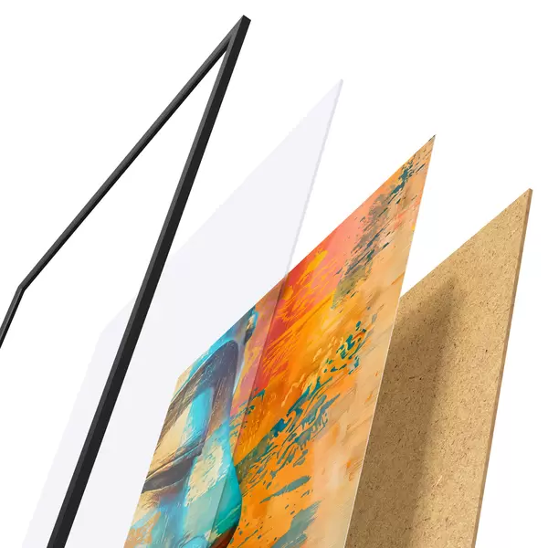 Il poster è composto da cornice, plexiglass, immagine stampata e supporto in truciolato. Il poster può essere immediatamente appeso alla parete grazie ai supporti sul retro.