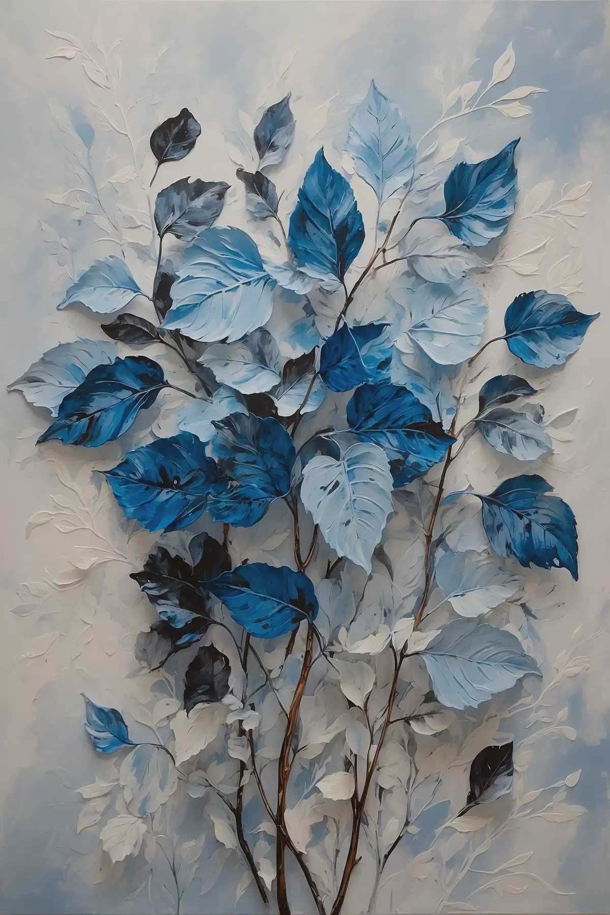 Poster Pianta con foglie bianche e blu Nr f39156