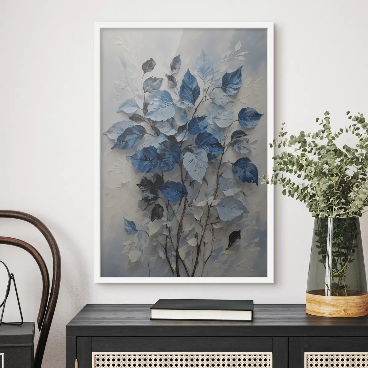 Poster Pianta con foglie bianche e blu f39156
