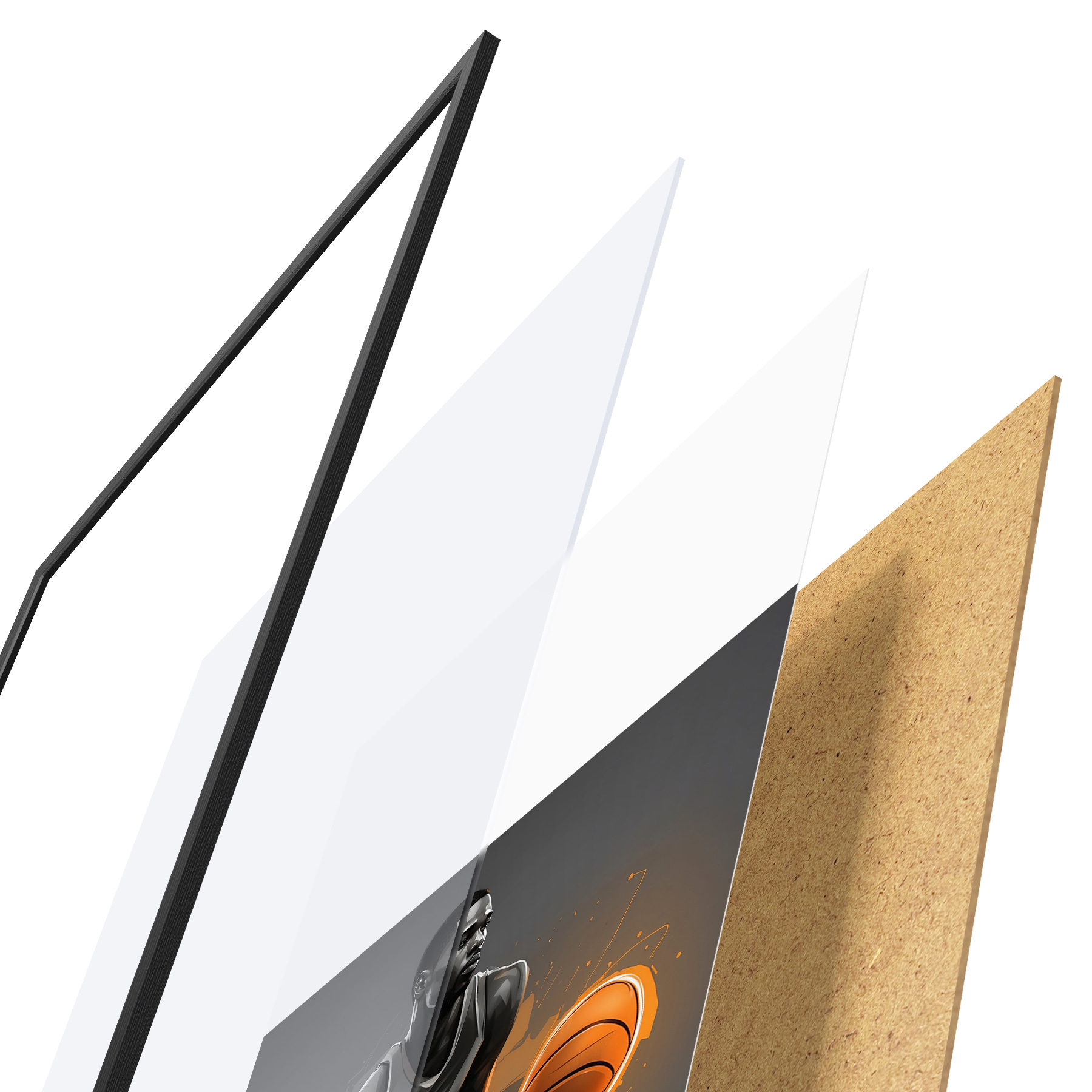 Il poster è composto da cornice, plexiglass, immagine stampata e supporto in truciolato. Il poster può essere immediatamente appeso alla parete grazie ai supporti sul retro.