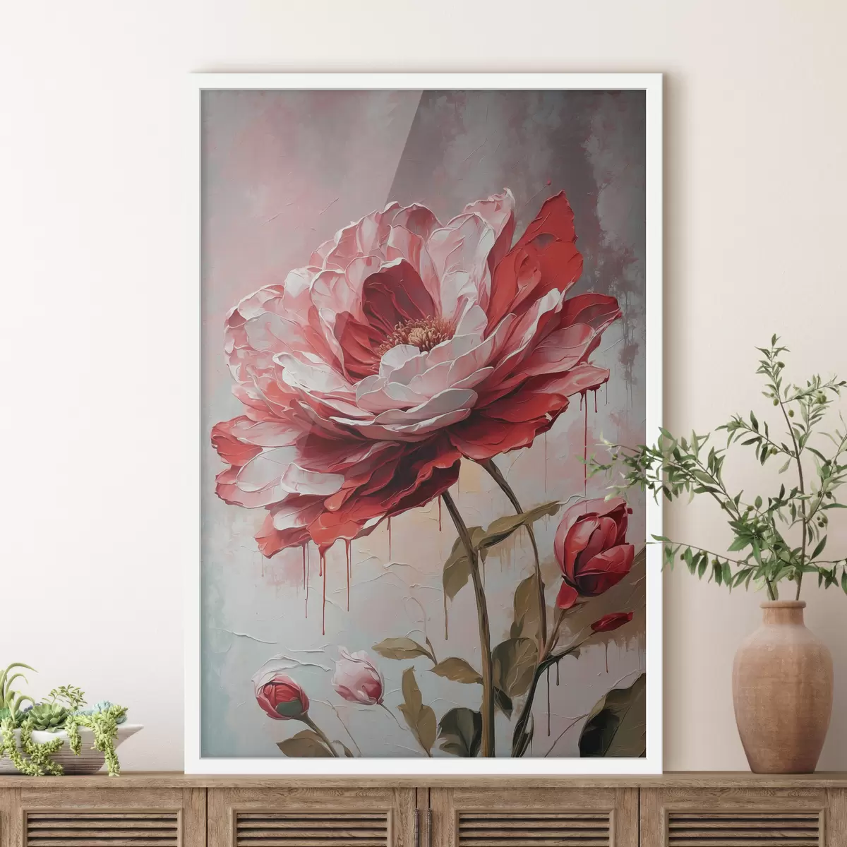 Poster Fiore rosso su sfondo bianco-grigio f39173