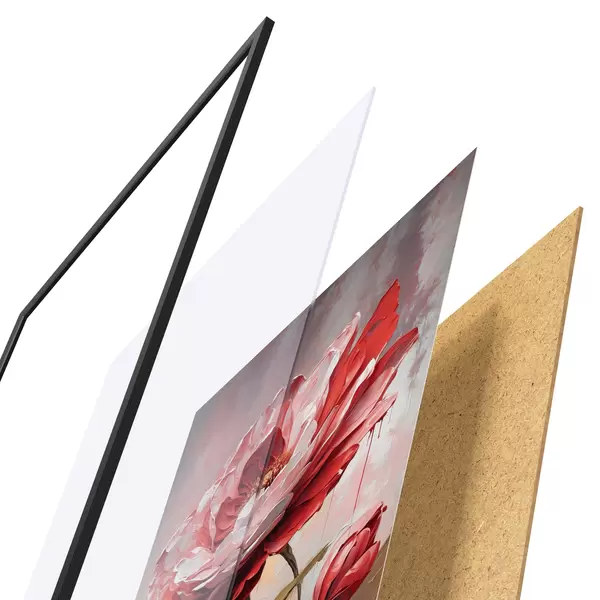 Il poster è composto da cornice, plexiglass, immagine stampata e supporto in truciolato. Il poster può essere immediatamente appeso alla parete grazie ai supporti sul retro.