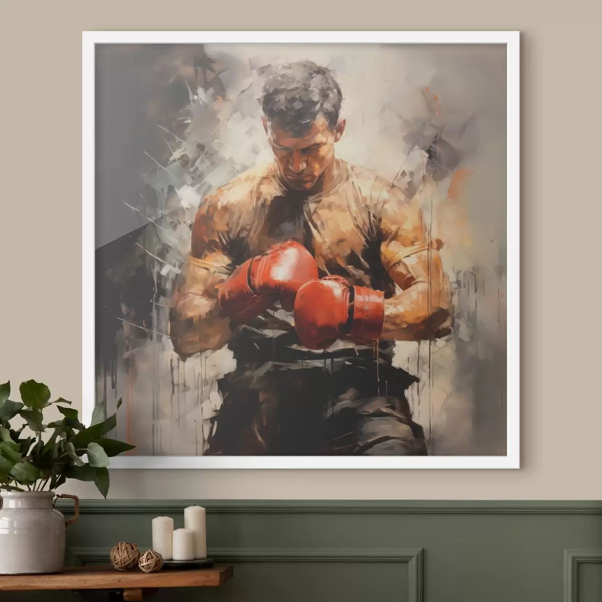 Poster Boxer in guanti rossi pittura ad olio f39180