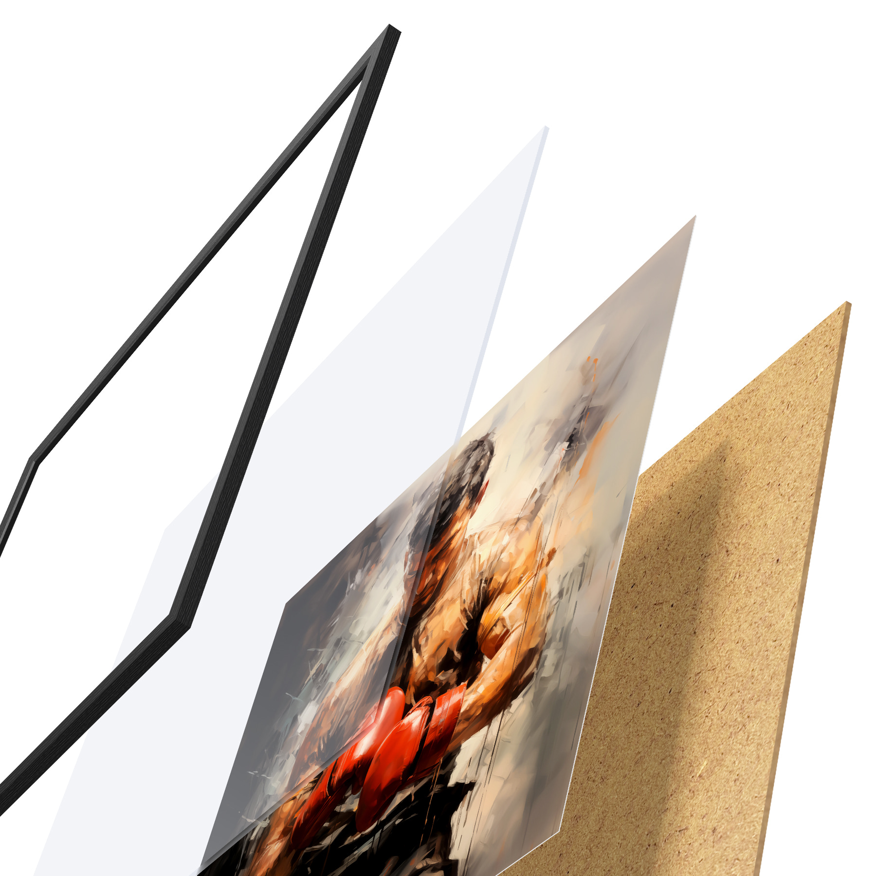 Il poster è composto da cornice, plexiglass, immagine stampata e supporto in truciolato. Il poster può essere immediatamente appeso alla parete grazie ai supporti sul retro.
