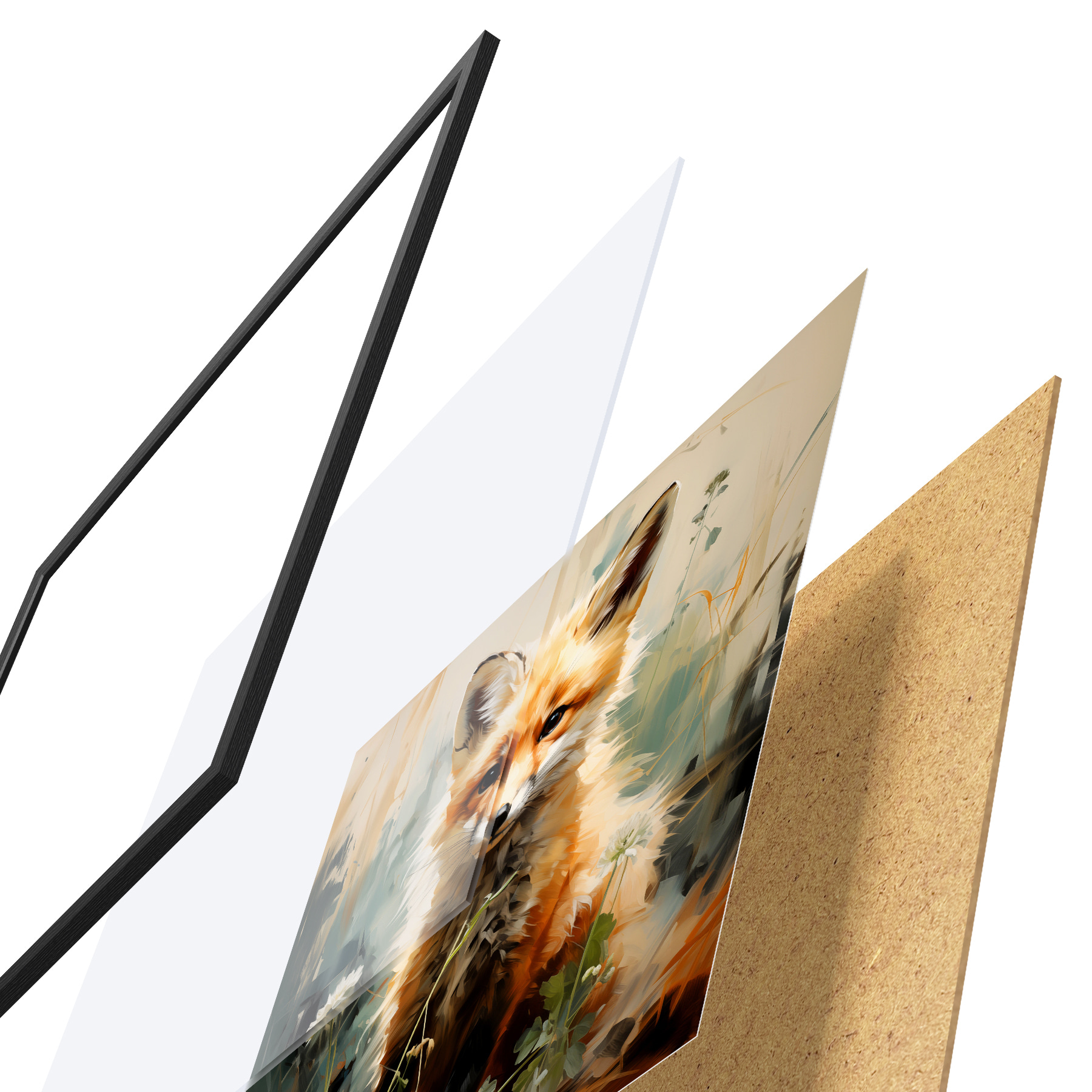 Il poster è composto da cornice, plexiglass, immagine stampata e supporto in truciolato. Il poster può essere immediatamente appeso alla parete grazie ai supporti sul retro.