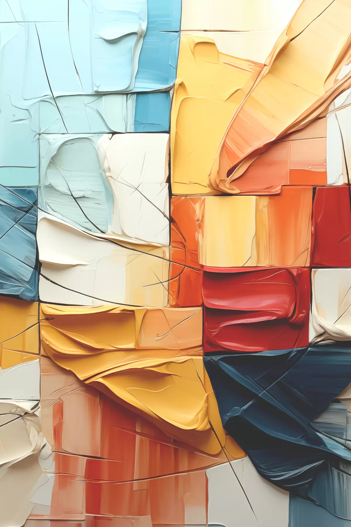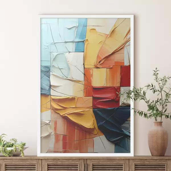 Poster Pezzi di vernice brillante con crepe, quadrati, pittura cubista Nr f39196