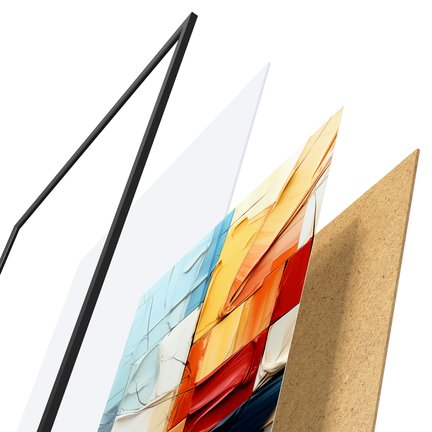 Il poster è composto da cornice, plexiglass, immagine stampata e supporto in truciolato. Il poster può essere immediatamente appeso alla parete grazie ai supporti sul retro.
