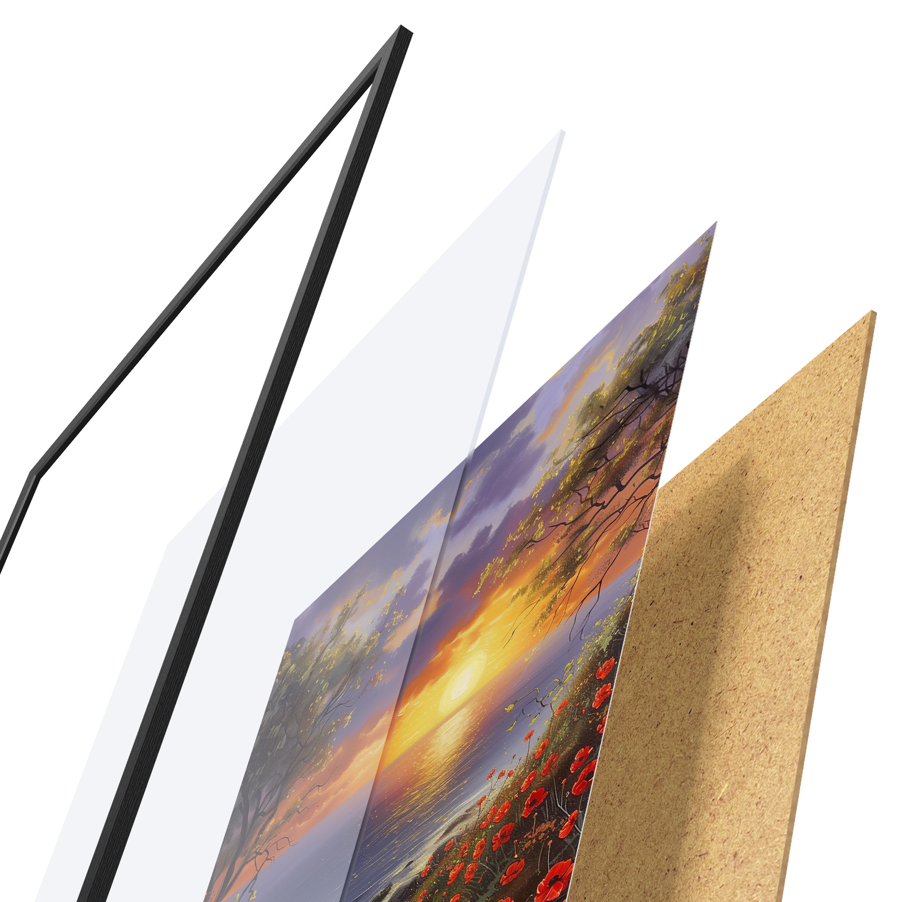 Il poster è composto da cornice, plexiglass, immagine stampata e supporto in truciolato. Il poster può essere immediatamente appeso alla parete grazie ai supporti sul retro.
