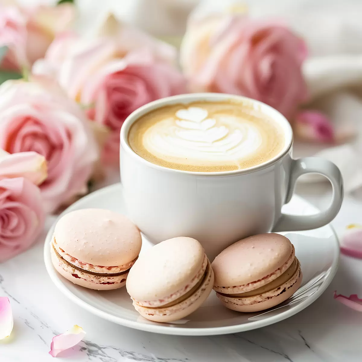 Poster Una tazza di caffè su un delicato sfondo floreale Nr f39232