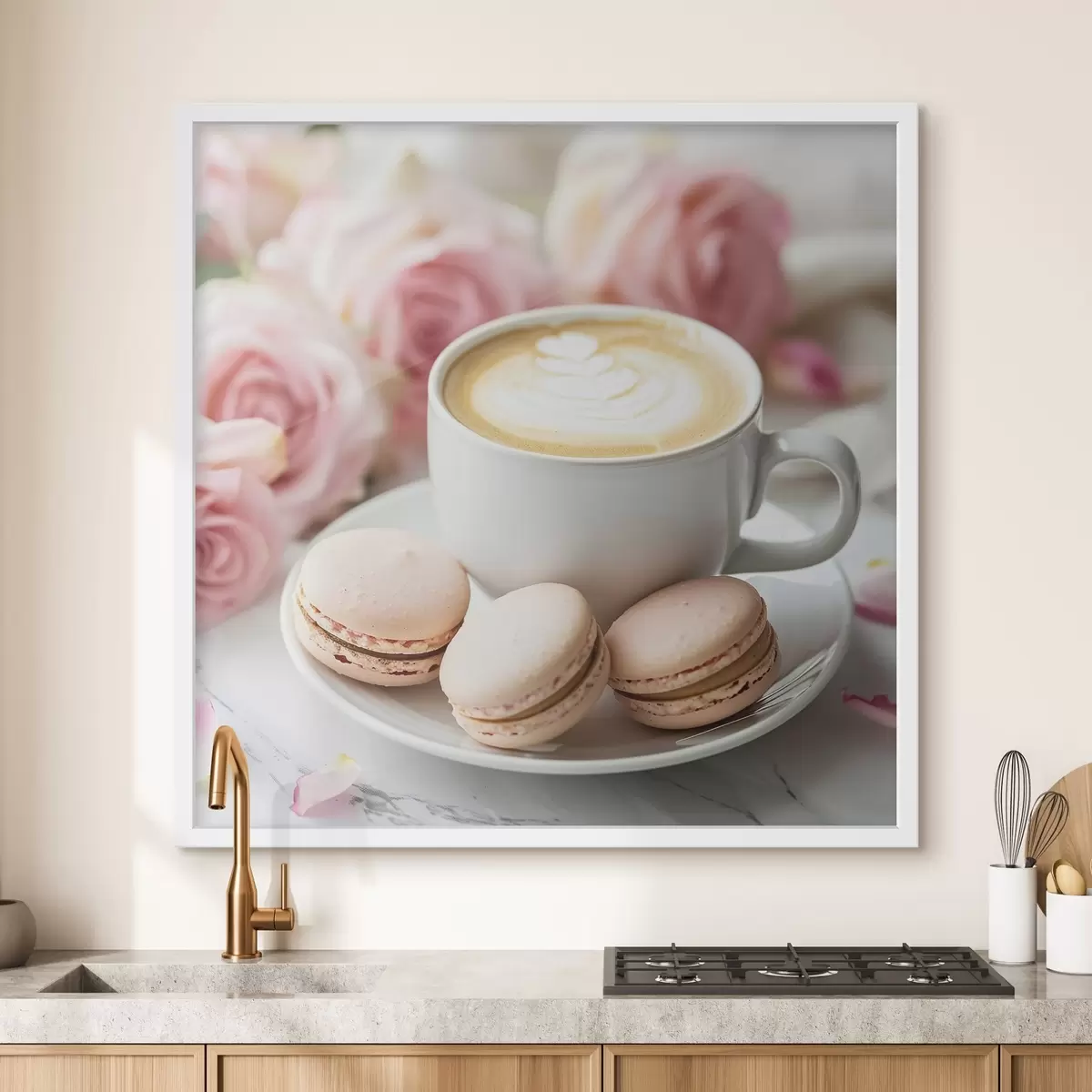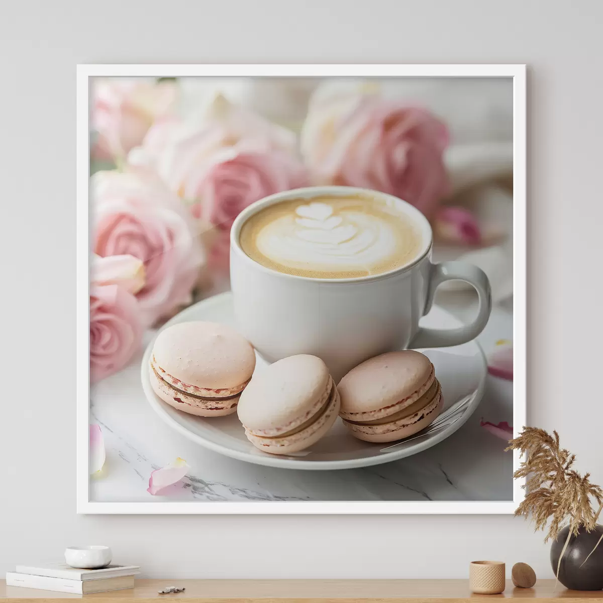 Poster Una tazza di caffè su un delicato sfondo floreale f39232