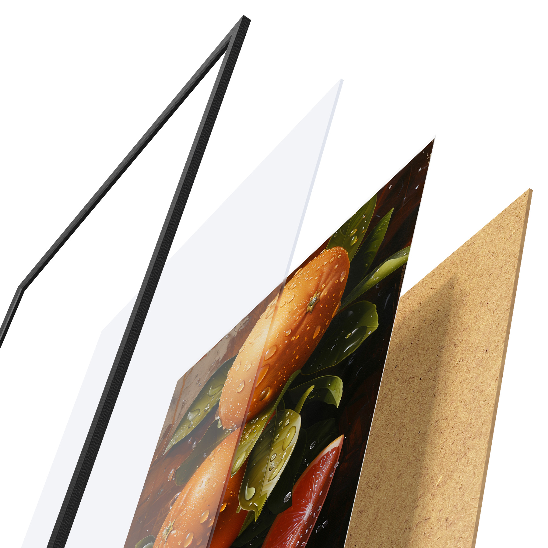 Il poster è composto da cornice, plexiglass, immagine stampata e supporto in truciolato. Il poster può essere immediatamente appeso alla parete grazie ai supporti sul retro.