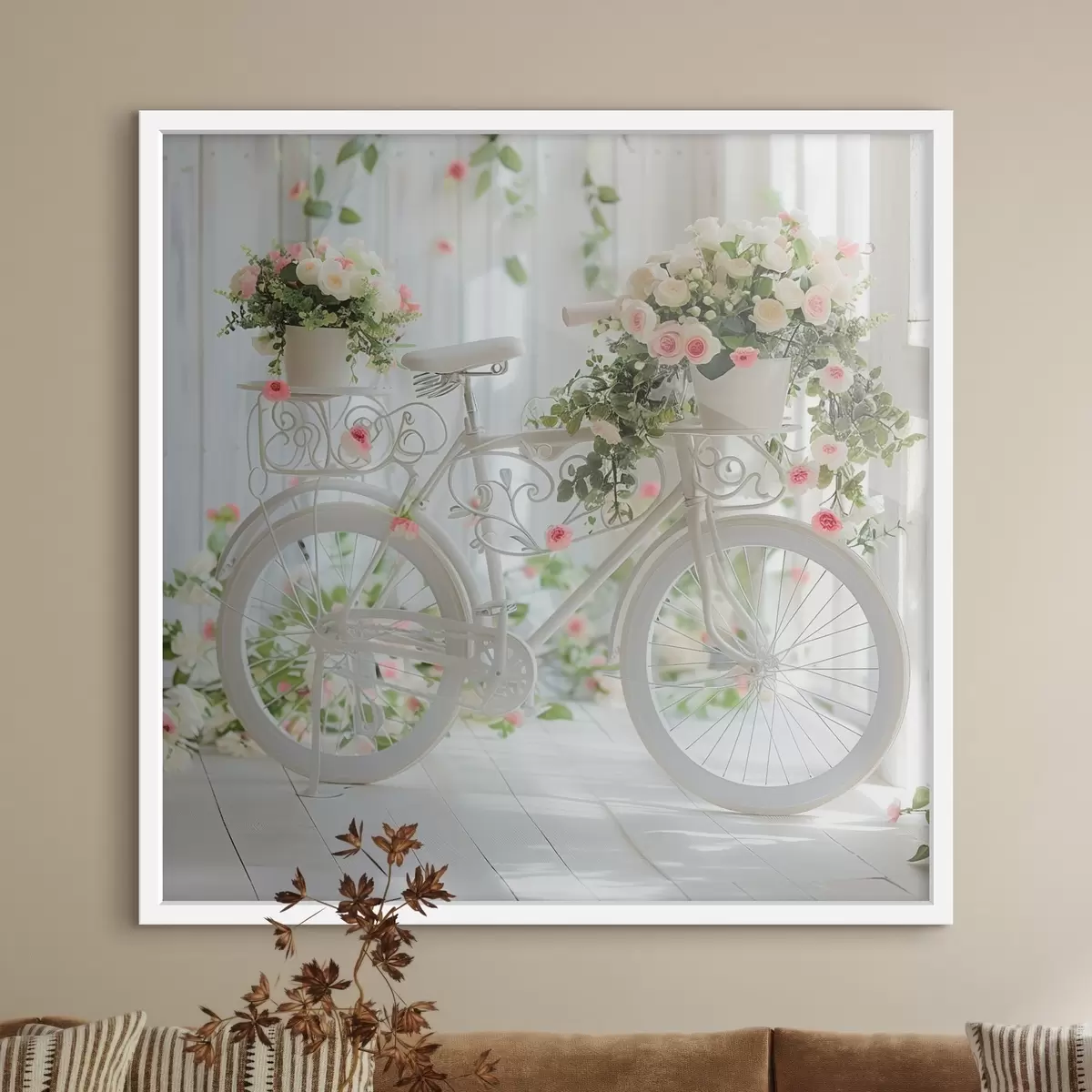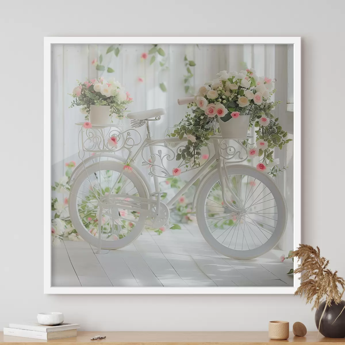 Poster Bicicletta bianca con cesto di fiori in stile provenzale Nr f39243