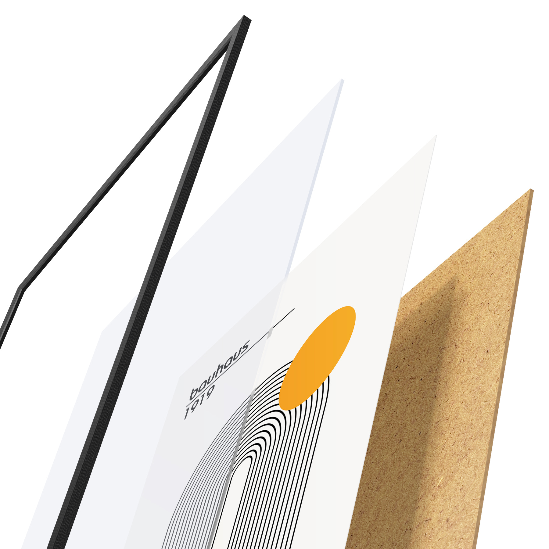 Il poster è composto da cornice, plexiglass, immagine stampata e supporto in truciolato. Il poster può essere immediatamente appeso alla parete grazie ai supporti sul retro.