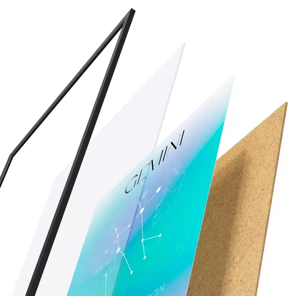 Il poster è composto da cornice, plexiglass, immagine stampata e supporto in truciolato. Il poster può essere immediatamente appeso alla parete grazie ai supporti sul retro.