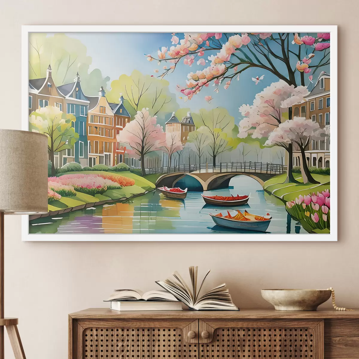 Poster alberi in fiore ad Amsterdam in primavera Nr f39301