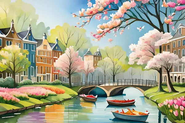 Poster alberi in fiore ad Amsterdam in primavera Nr f39301