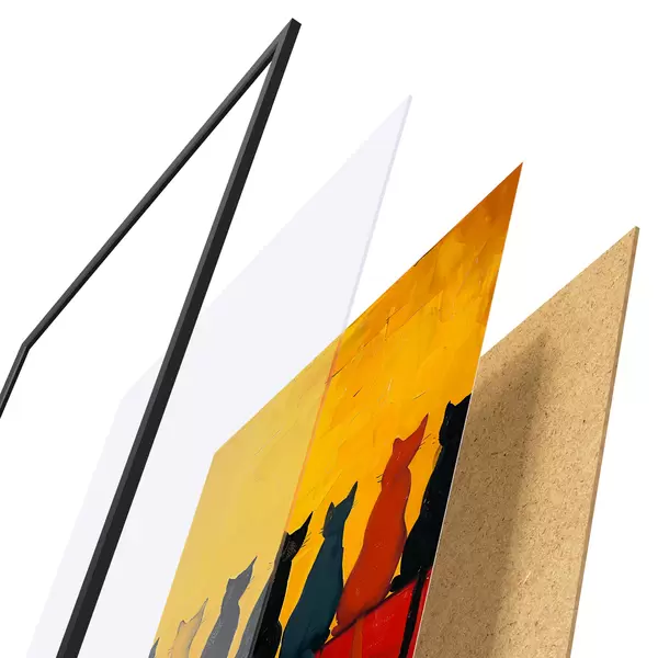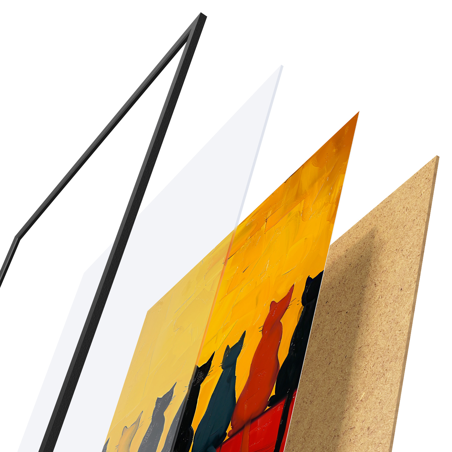 Il poster è composto da cornice, plexiglass, immagine stampata e supporto in truciolato. Il poster può essere immediatamente appeso alla parete grazie ai supporti sul retro.