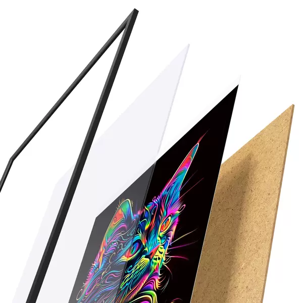 Il poster è composto da cornice, plexiglass, immagine stampata e supporto in truciolato. Il poster può essere immediatamente appeso alla parete grazie ai supporti sul retro.