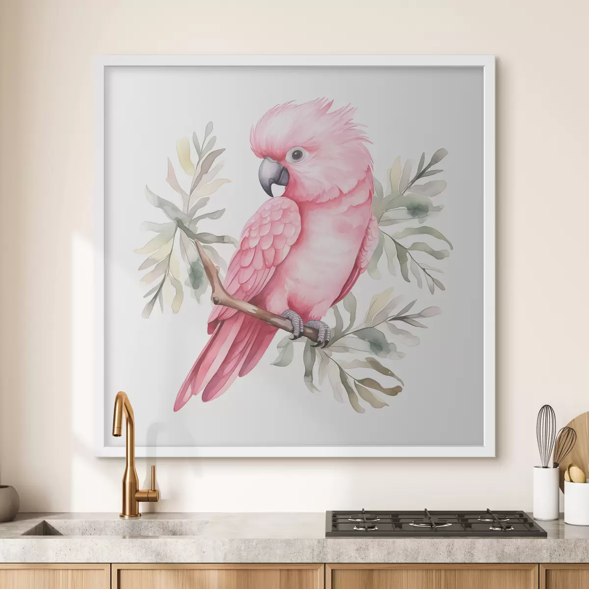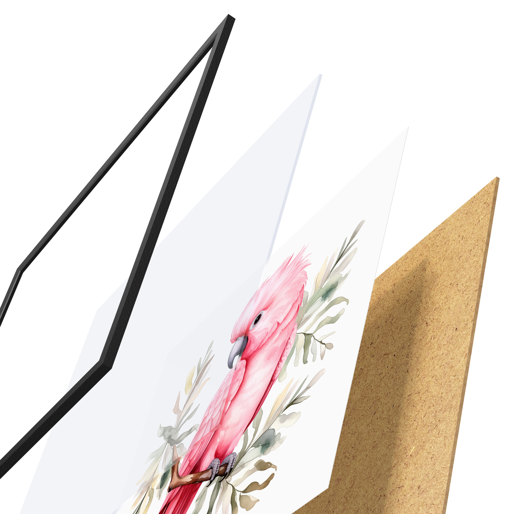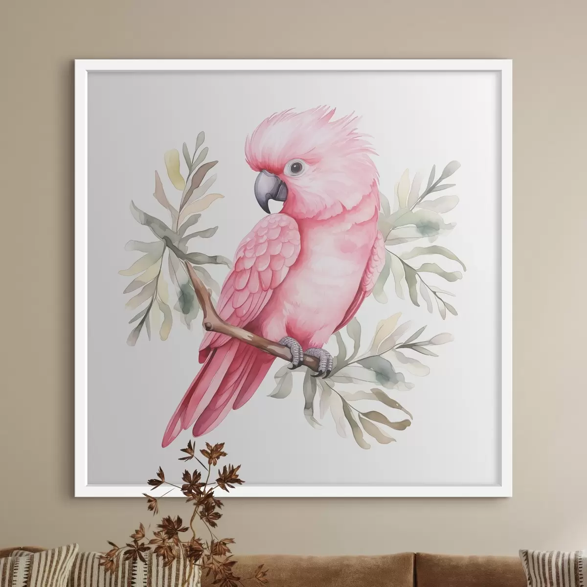 Poster Un pappagallo cacatua rosa siede su un ramo in acquerello Nr f39334