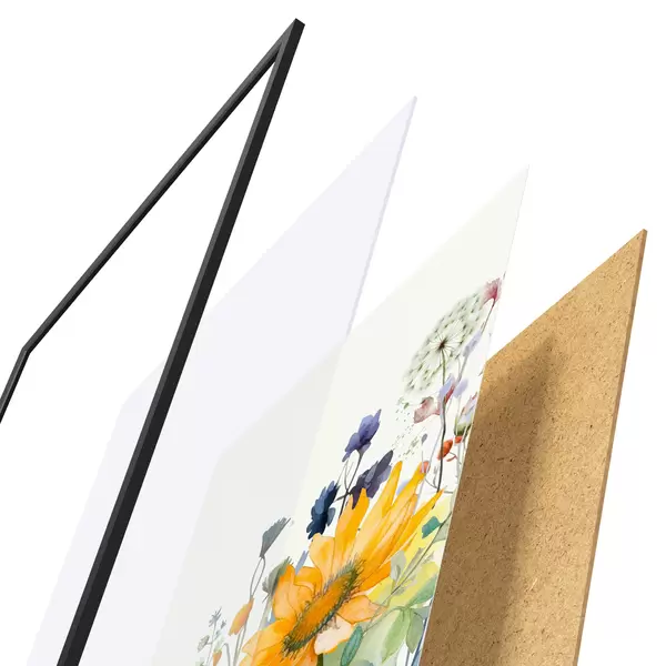 Il poster è composto da cornice, plexiglass, immagine stampata e supporto in truciolato. Il poster può essere immediatamente appeso alla parete grazie ai supporti sul retro.
