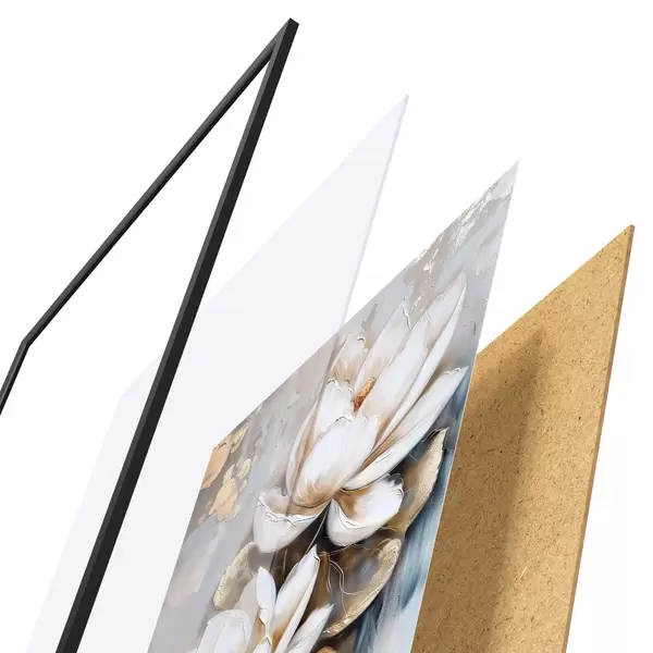 Il poster è composto da cornice, plexiglass, immagine stampata e supporto in truciolato. Il poster può essere immediatamente appeso alla parete grazie ai supporti sul retro.