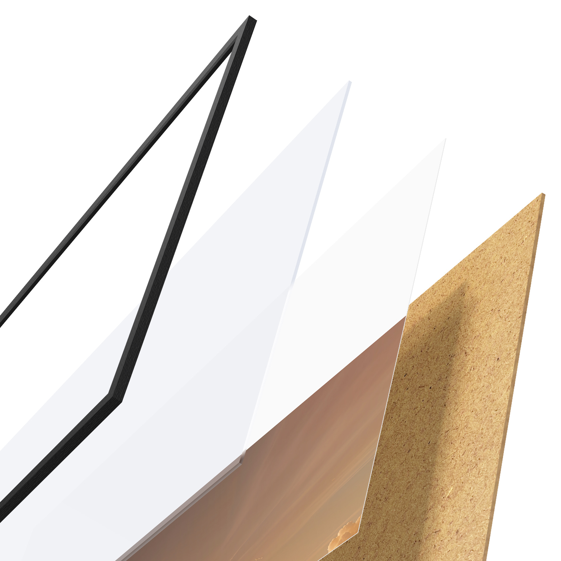 Il poster è composto da cornice, plexiglass, immagine stampata e supporto in truciolato. Il poster può essere immediatamente appeso alla parete grazie ai supporti sul retro.