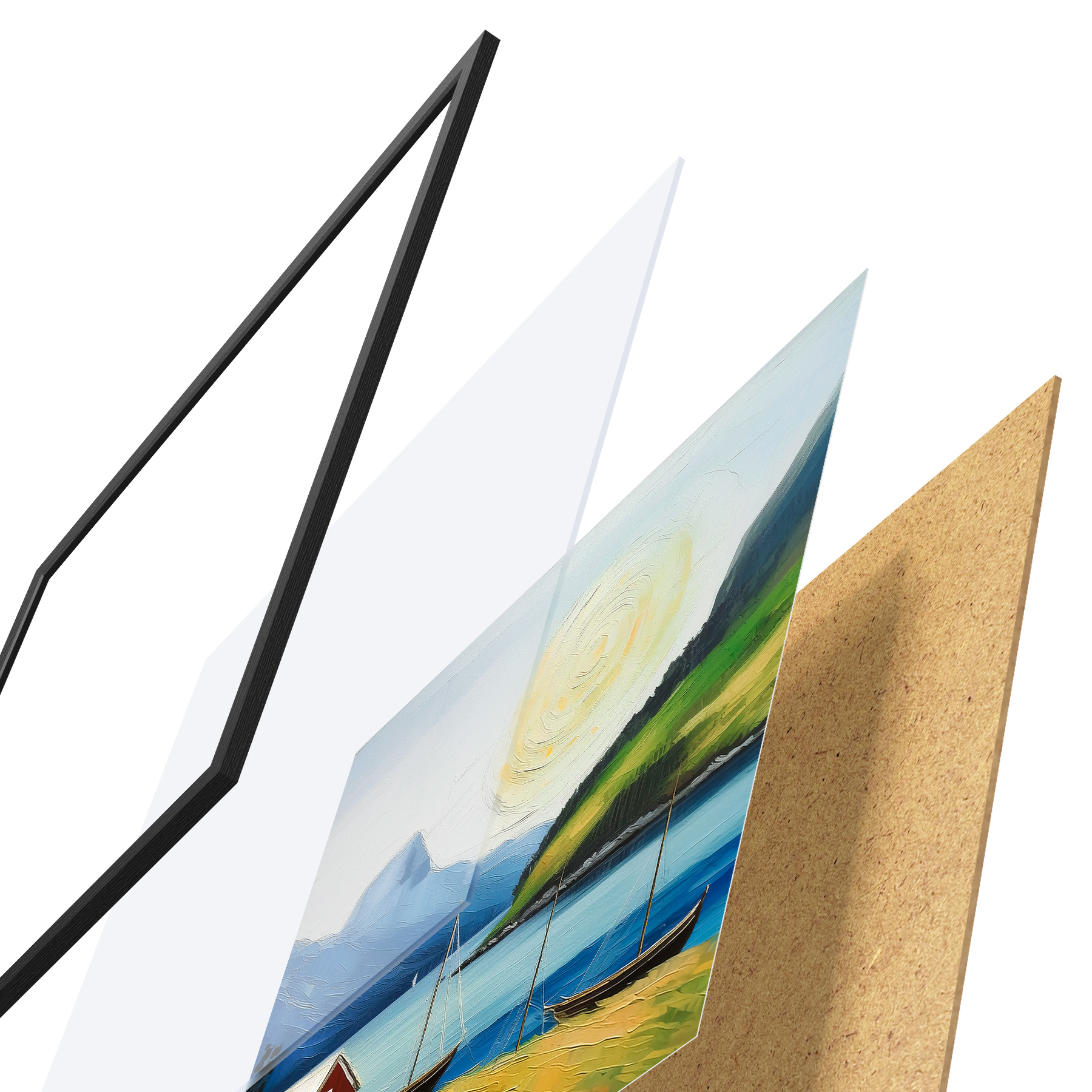Il poster è composto da cornice, plexiglass, immagine stampata e supporto in truciolato. Il poster può essere immediatamente appeso alla parete grazie ai supporti sul retro.
