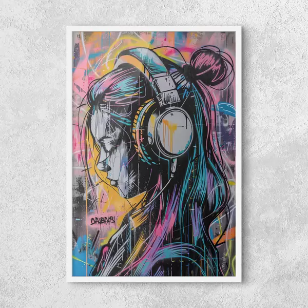 Poster Donna con le cuffie in stile graffiti Nr f39443