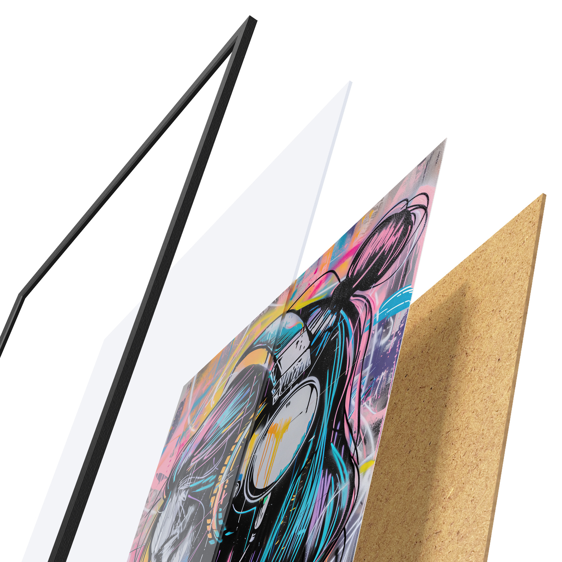 Il poster è composto da cornice, plexiglass, immagine stampata e supporto in truciolato. Il poster può essere immediatamente appeso alla parete grazie ai supporti sul retro.