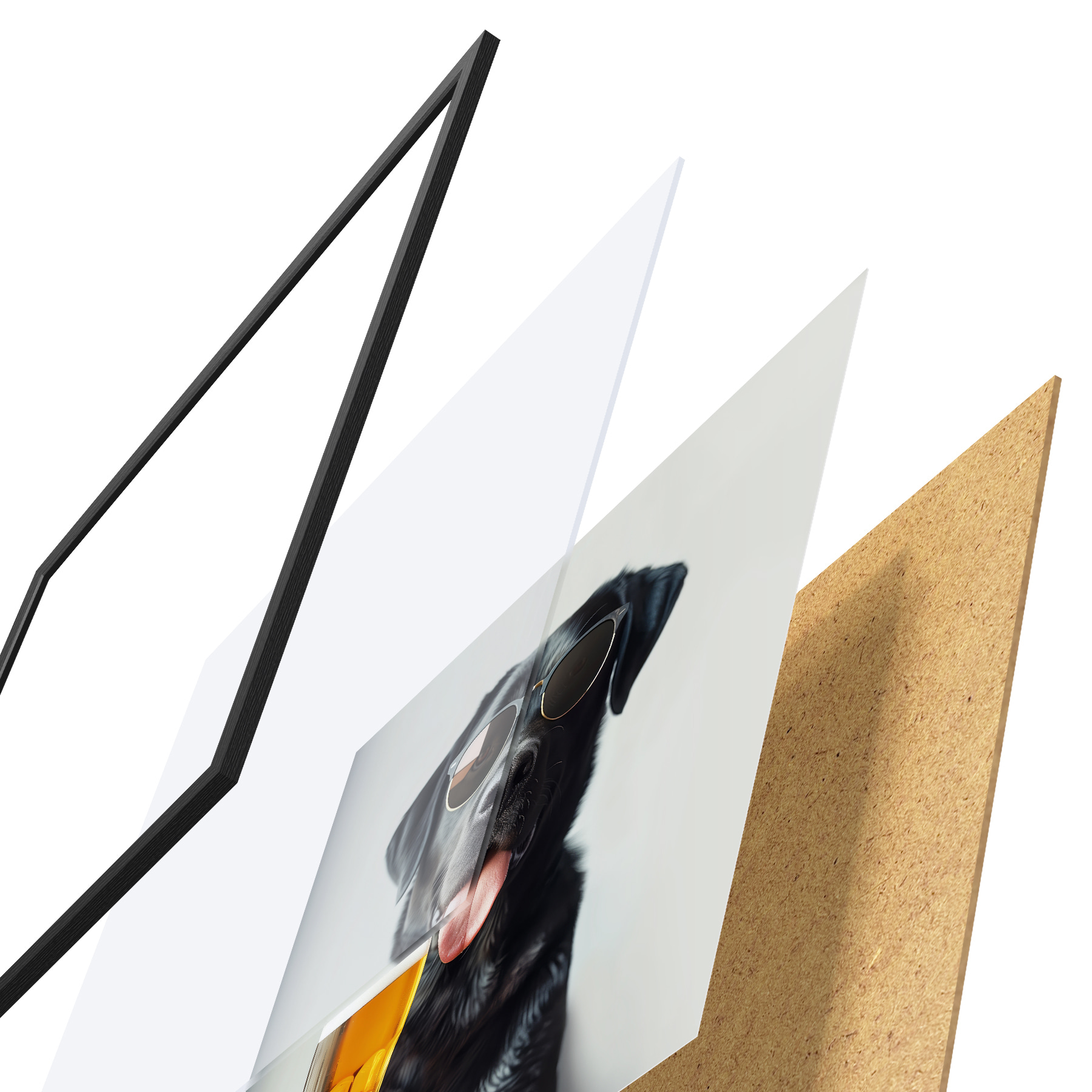 Il poster è composto da cornice, plexiglass, immagine stampata e supporto in truciolato. Il poster può essere immediatamente appeso alla parete grazie ai supporti sul retro.
