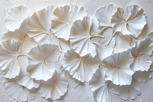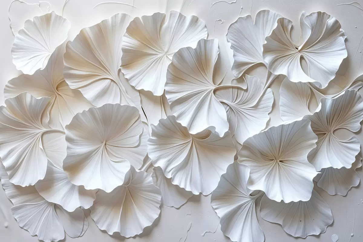 Poster Delicati fiori bianchi disposti in un motivo naturale e organico su uno sfondo chiaro f39510