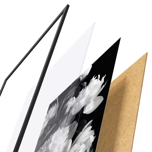 Il poster è composto da cornice, plexiglass, immagine stampata e supporto in truciolato. Il poster può essere immediatamente appeso alla parete grazie ai supporti sul retro.
