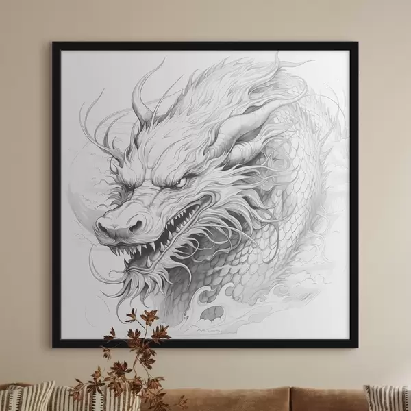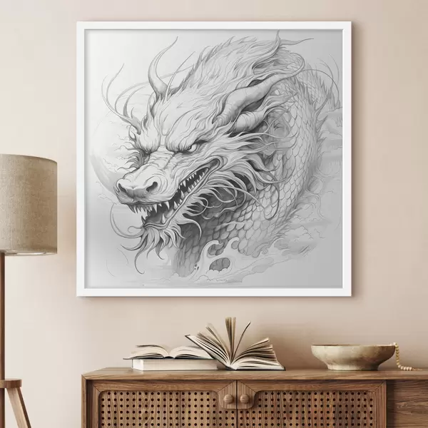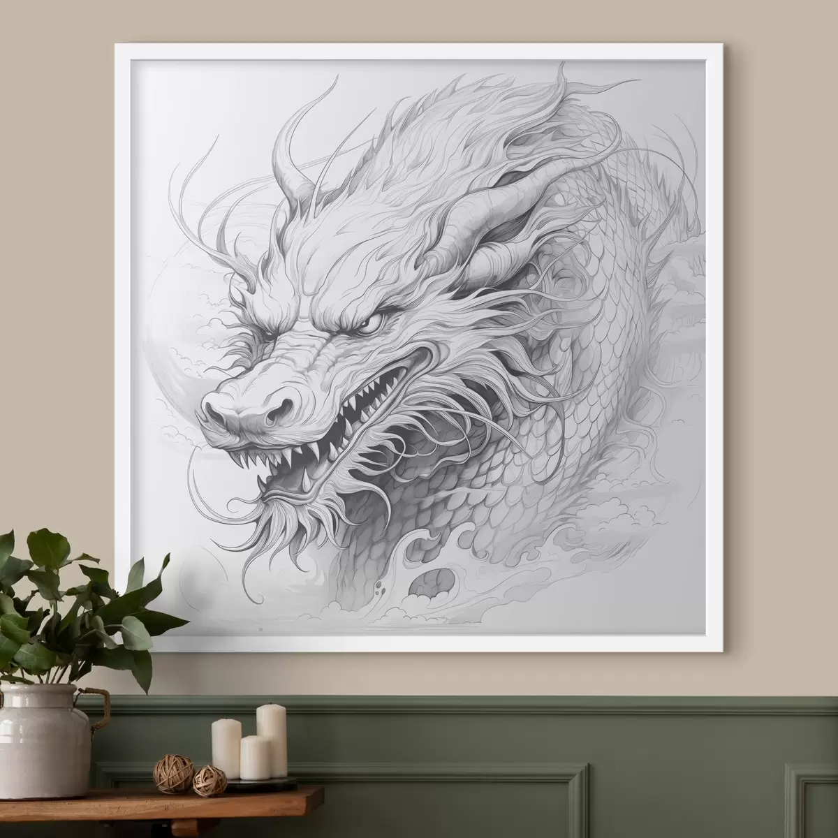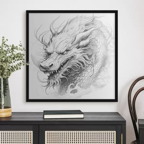 Poster Disegno al tratto monocromatico di un drago in stile cinese Nr f39563