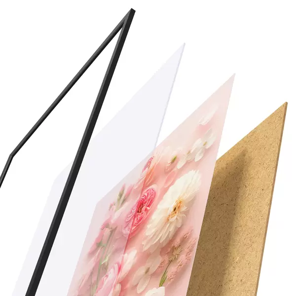 Il poster è composto da cornice, plexiglass, immagine stampata e supporto in truciolato. Il poster può essere immediatamente appeso alla parete grazie ai supporti sul retro.