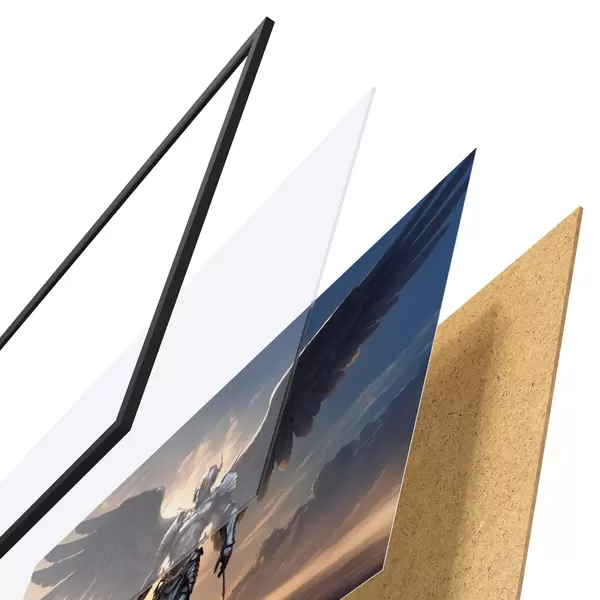 Il poster è composto da cornice, plexiglass, immagine stampata e supporto in truciolato. Il poster può essere immediatamente appeso alla parete grazie ai supporti sul retro.