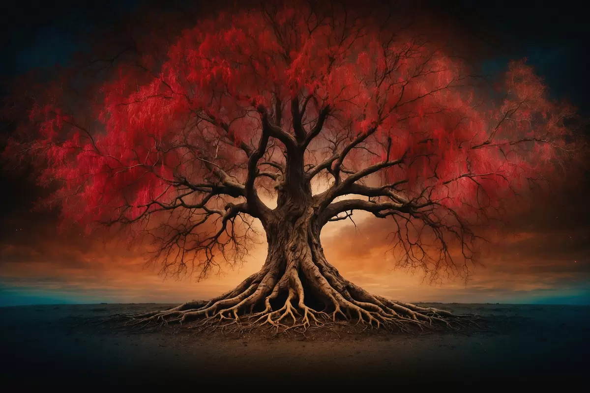 Poster Albero radicato nel mezzo del campo vuoto f39614