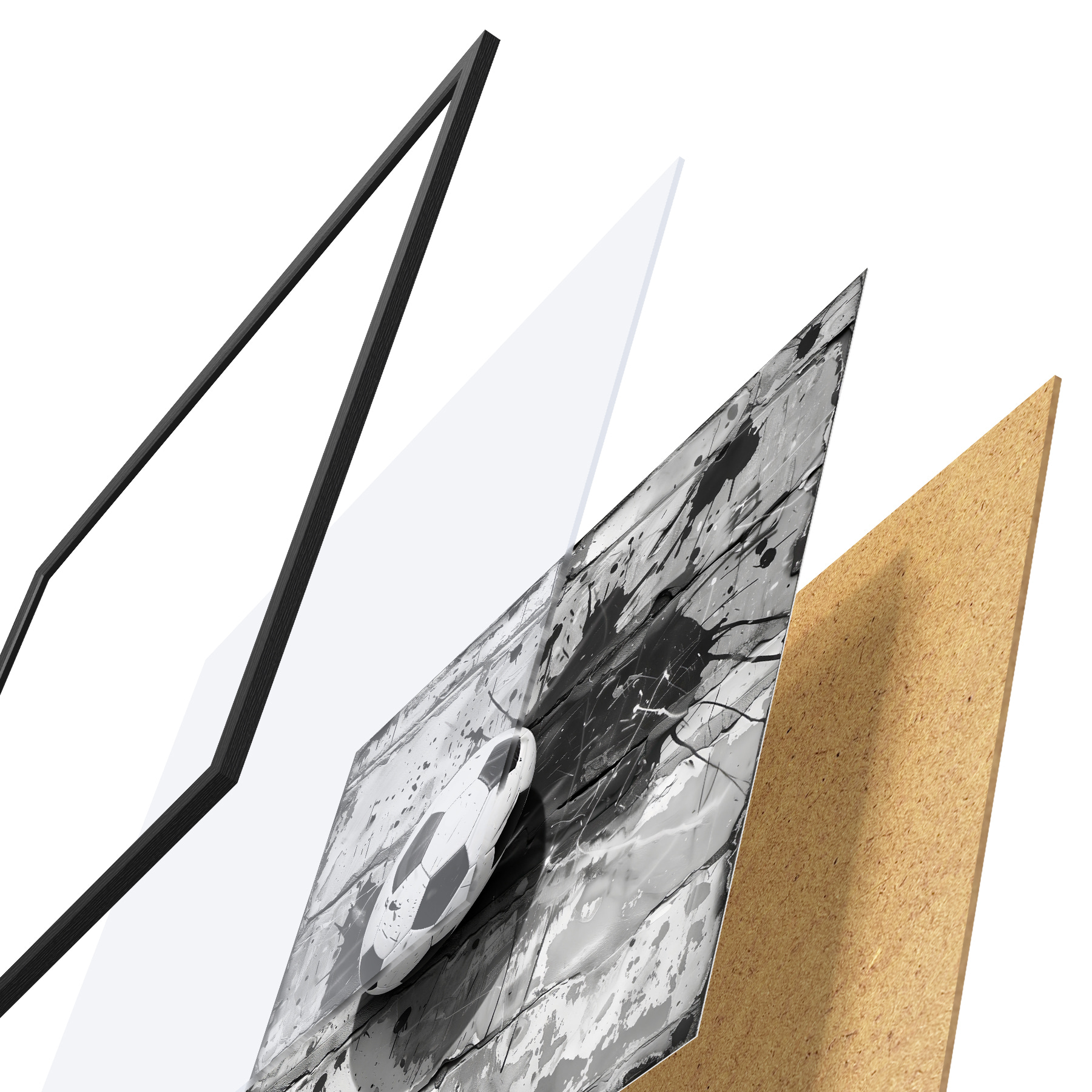 Il poster è composto da cornice, plexiglass, immagine stampata e supporto in truciolato. Il poster può essere immediatamente appeso alla parete grazie ai supporti sul retro.