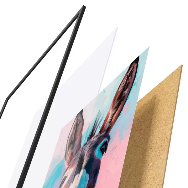 Il poster è composto da cornice, plexiglass, immagine stampata e supporto in truciolato. Il poster può essere immediatamente appeso alla parete grazie ai supporti sul retro.