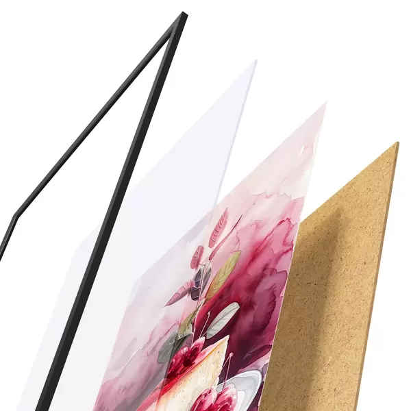 Il poster è composto da cornice, plexiglass, immagine stampata e supporto in truciolato. Il poster può essere immediatamente appeso alla parete grazie ai supporti sul retro.